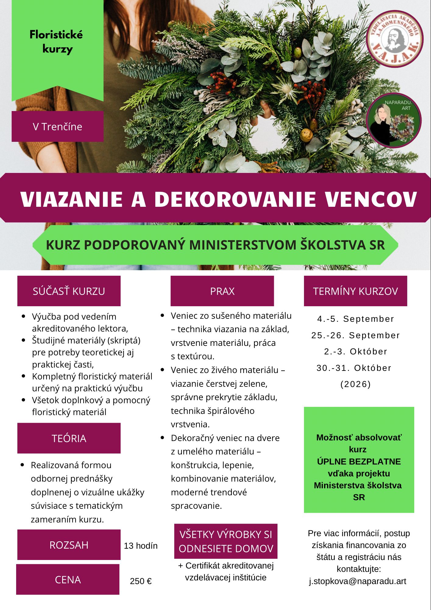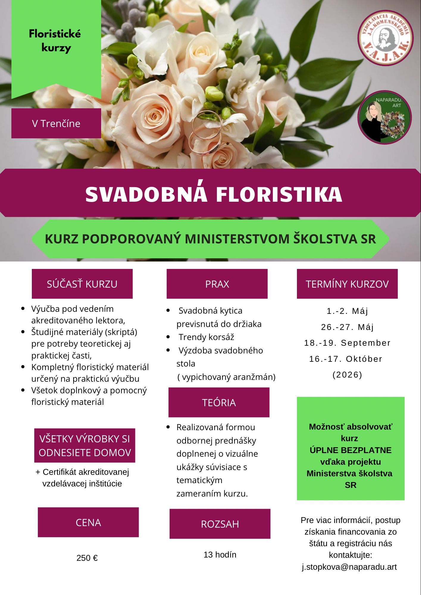Na uvedený kurz bola spoločnosti V.A.J.A.K. s.r.o. vydaná akreditácia Ministerstvom zdravotníctva SR.